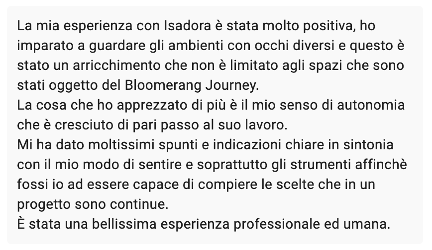 "La cosa che mi è piaciuta di più è stata considerare tutti gli elementi degli spazi come strumenti di reciproco benessere." — Luisa